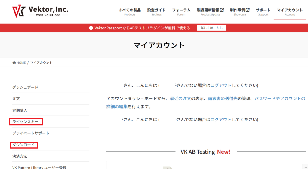 Vektor Passport を購入時に作成するマイアカウントページの「ダウンロード」「ライセンスキー」からそれぞれにダウンロードしてください。