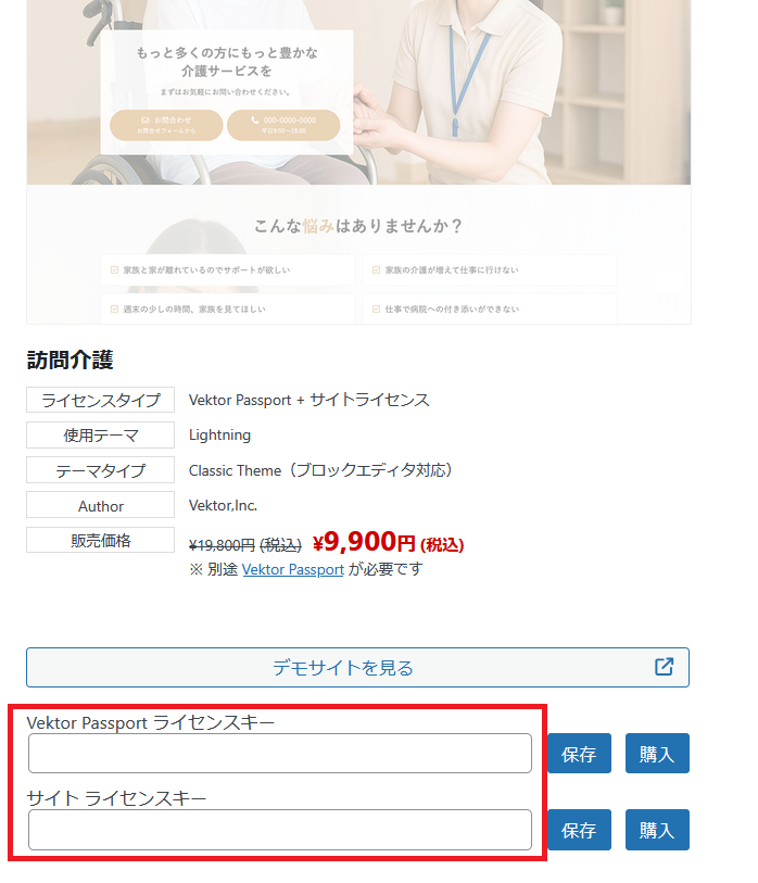 Lightning有料版デモサイトのライセンス購入後は「VK FullSite Installer」を使用して簡単にサイトが作成できます。