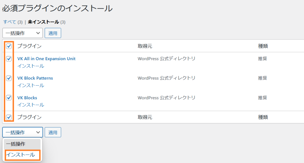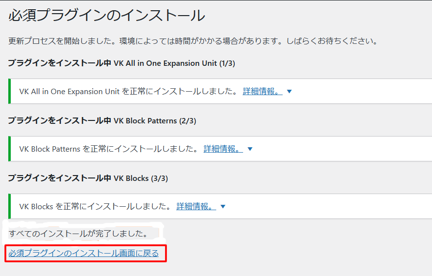④「プラグインのインストールを開始」をクリックするとこのような画面になります。