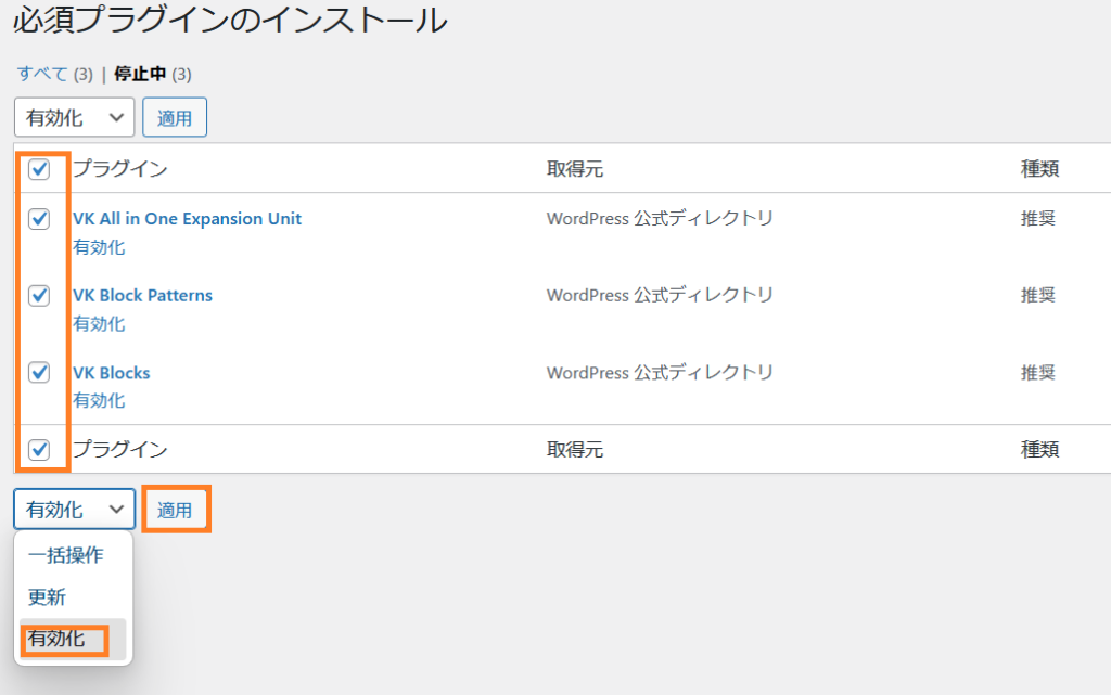 ⑥クリックすると下記のような表示になります。プラグインの有効化をしておきましょう。