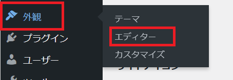 管理画面 ➡ 外観 ➡ エディタ をクリックします。