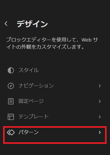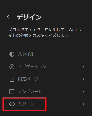デザインの画面が表示されますので「パターン」をクリックします。