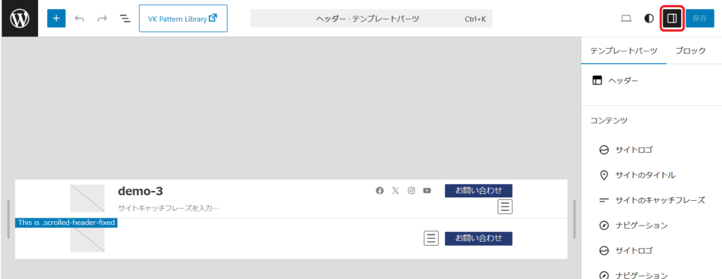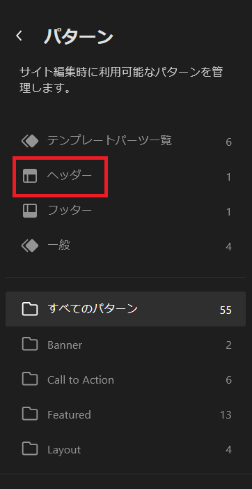 ヘッダーのパターンが表示されています。こちらをクリックします。