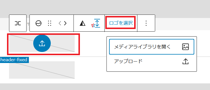 ロゴの入るスペースをクリックし「ロゴの選択」をクリックしロゴをアップロードします。