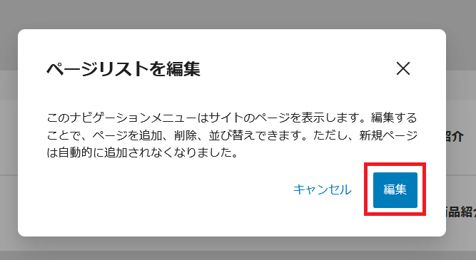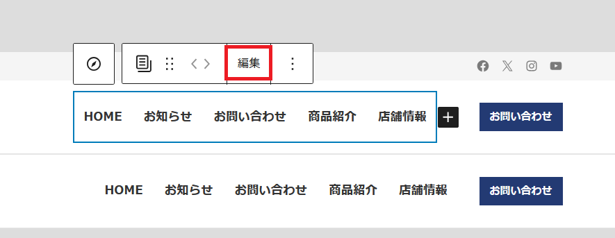 上段のナビゲーションをクリックして表示されてたら、赤枠の「編集」をクリックします。