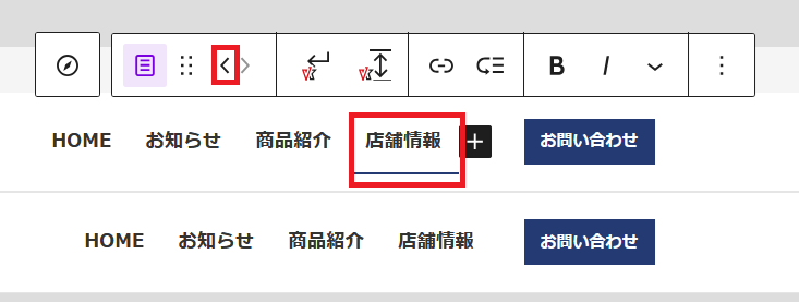 ナビゲーション項目を移動したい時には、項目をクリックし「〈 」をクリックして左へ移動させます。