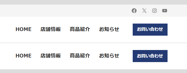 上段がグローバルナビゲーションとして最上部に表示されます、下段がスクロール時のグローバルナビゲーションとなります。