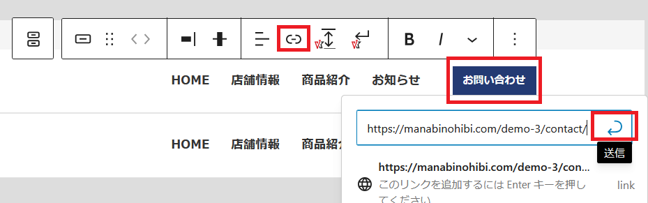 赤枠のリンクをクリックして、リンク先のURLを貼り付け送信をクリックします。
