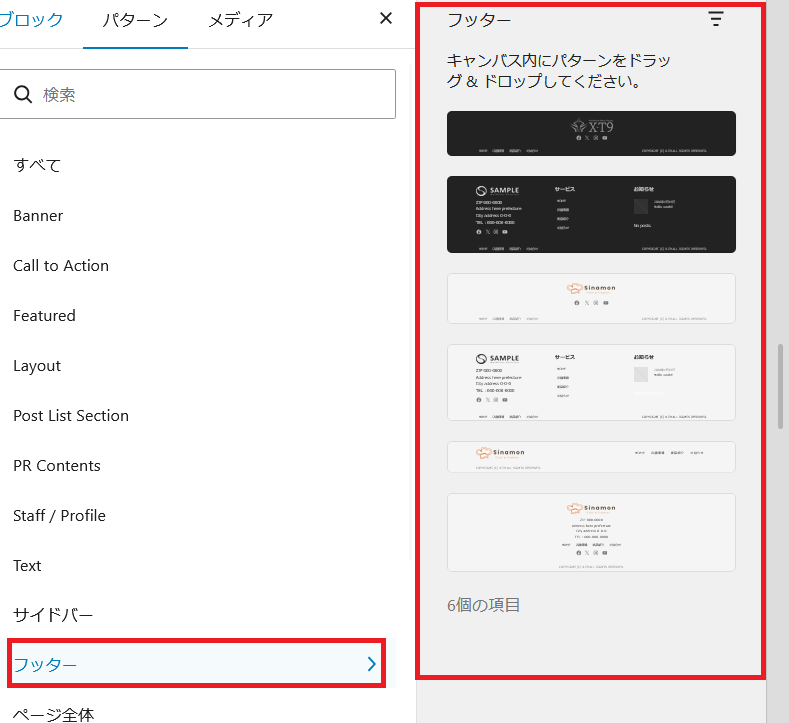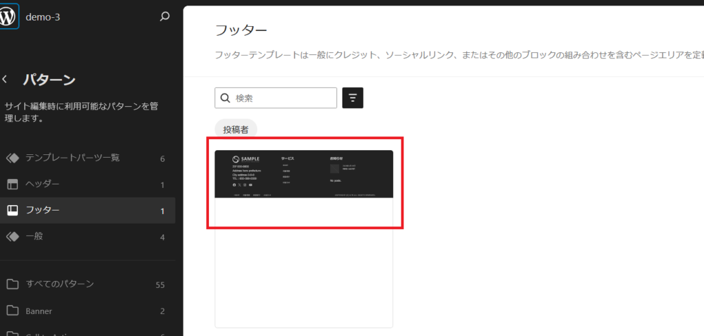 フッターのパターンが表示されました。